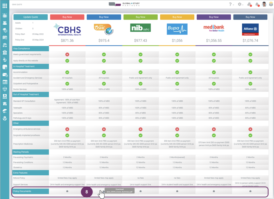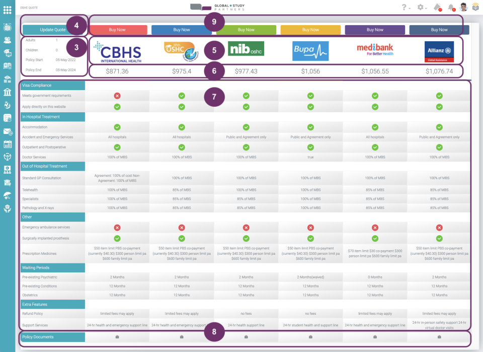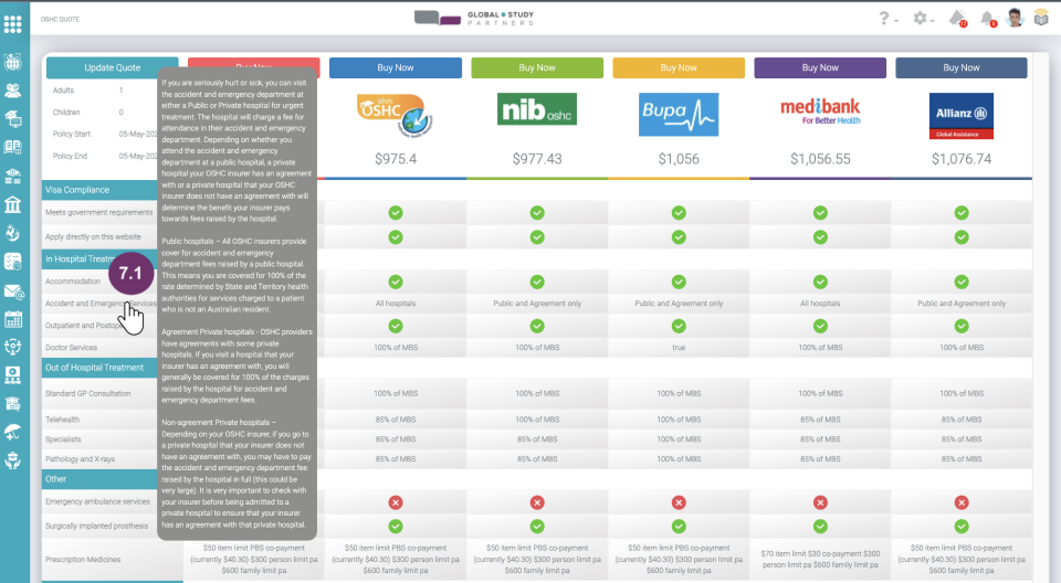 Click ‘Get Quote Now’ button to compare prices of popular OSHC providers to international students.