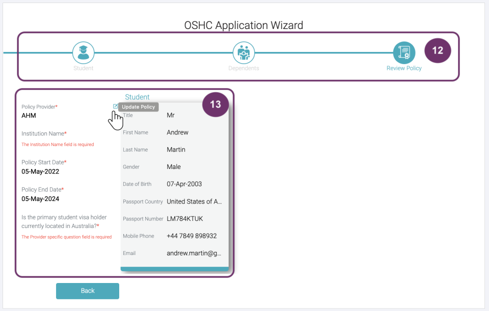13. In this step you have to double check if all the details you indicated from the previous steps are all correct and final. There’s one more field you have to fill out which is the Institution Name. Click the update icon button across the Policy Provider field to complete this.