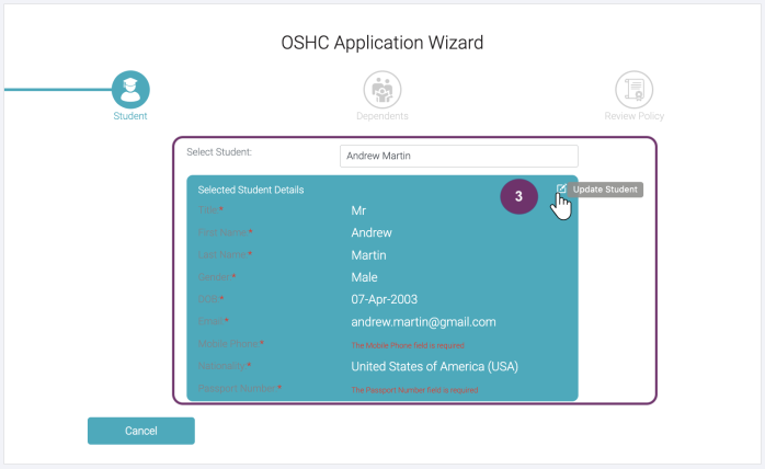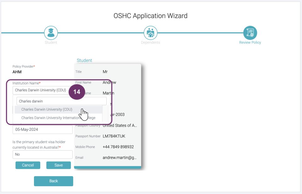 In case you want to change the policy provider, just click ‘Cancel’ button to go back in the OSHC Quote Page.