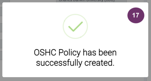 A pop-up will appear saying that an OSHC Policy have been successfully created.