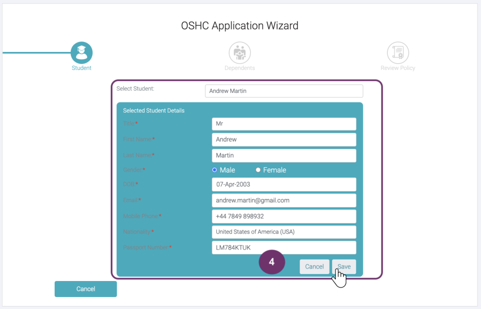 Fill out the missing fields to complete student details and click ‘Save’ button.