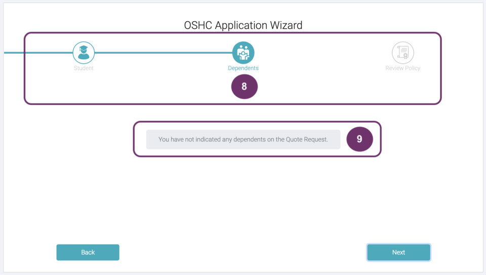 8. The color of the progress bar indicates that you are in step 2, Dependents.