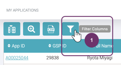 This function acts like a keyword search wherein it searches the list but on a columnar basis. It also acts like an advanced search because you can search data simultaneously. This function can be found together with the other function icons at the top left of the Application List. Click the funnel button to search by column.