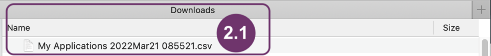 A report will be immediately downloaded upon clicking the CSV report icon. You can either find it below your browser’s window (2) and/ or in any of your folders (2.1).