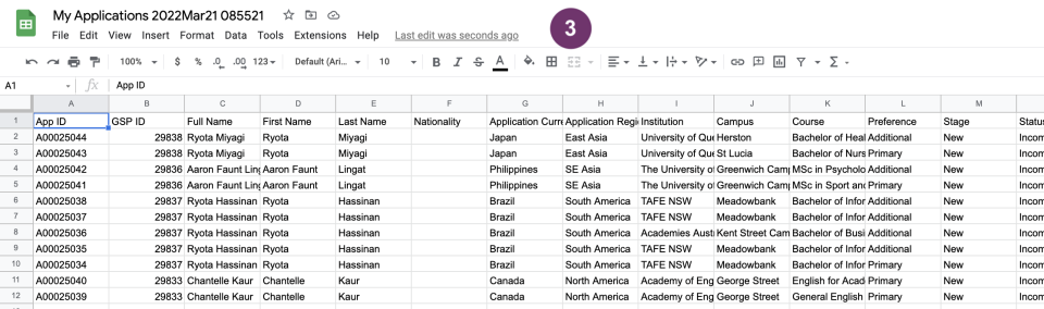 Open the file to view the details. The number of application records here should be the same as the number of records in the Report View when you made the export. The first row is the same as the column name in Report View and the details follow.